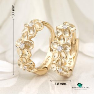 Plata Oro 950: La plata 950 es una aleación de metales preciosos donde el 95% es plata, es la presentación más pura de la plata en joyería, es hipoalergénica y puede limpiarse para que retome su brillo, adicionalmente este diseño ha sido pasado por un exclusivo baño de oro que cubre la plata y le permite a la joya tomar un color dorado similar al oro 18k.